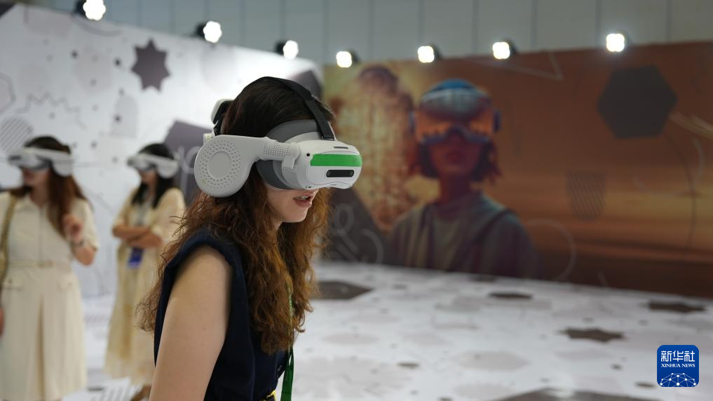 8月28日,观众在博览会上观看XR沉浸式电影《了不起的甲骨文·王子的荣耀》。