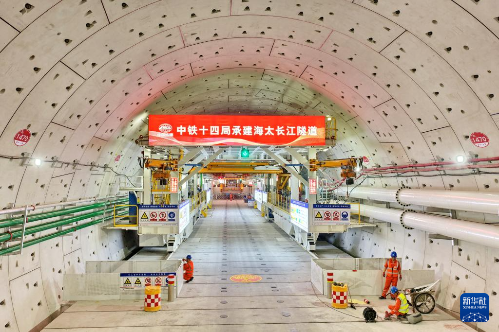 12月7日,施工人员在海太长江隧道工程施工现场拼装管片。