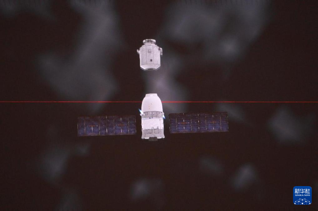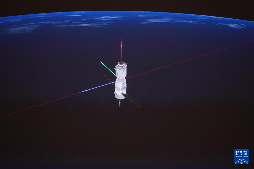 1月19日在北京航天飞行控制中心拍摄的神舟二十号飞船撤离空间站的模拟画面。