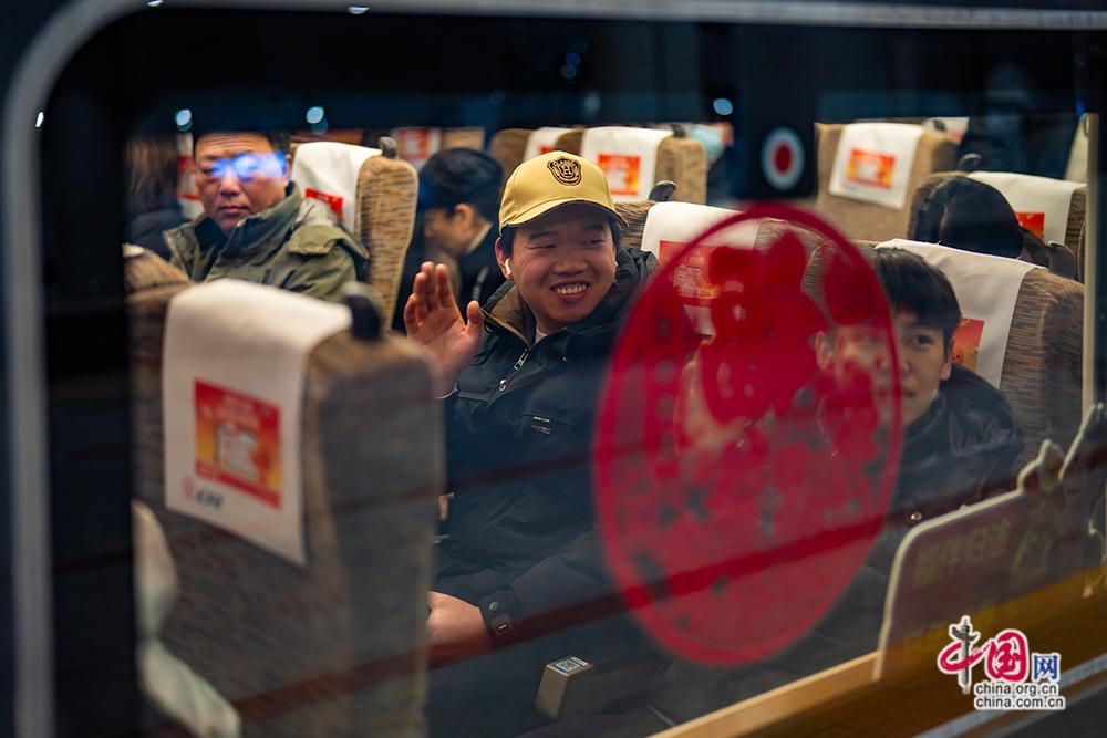 2月2日,乘坐北京局2026年春运首趟高铁列车G6701次的乘客。中国网记者 郑亮摄