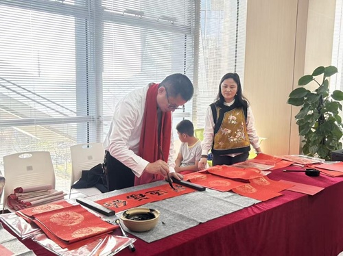 活动现场暖意氤氲、欢声阵阵,浓浓的年味与真挚的情谊在空气中交融蔓延。义剪、义诊、写春联等便民服务点位有序排布,工作人员者热情接待每一位到场人员。其中,写春联点位前早已排起了长龙,书法老师挥毫泼墨、笔走龙蛇,一笔一划间,将美好愿景融入大红春联,驻区官兵和企业员工手持春联,脸上洋溢着幸福的笑容。