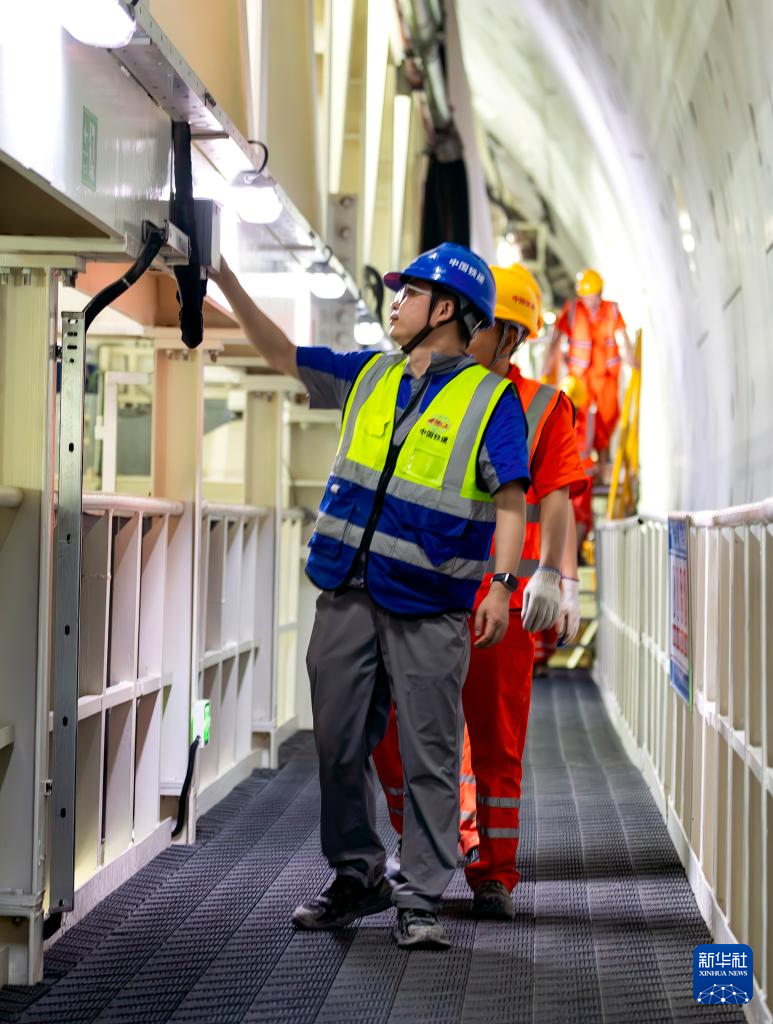 3月4日,中铁十四局工程作业人员在对盾尾油脂泵进行日常巡检。